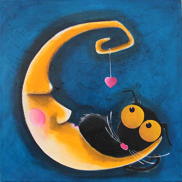 Stressie cat sleeps on the moon - original acrylic on canvas 16 x 16 inches